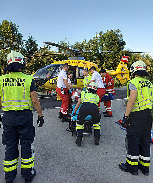 Die Freiwillige Feuerwehr Laxenburg unterstützte die Versorgung des Patienten sowie den Abtransport zum Hubschrauber, mit dem der junge Mann in ein Unfallkrankenhaus geflogen wurde.