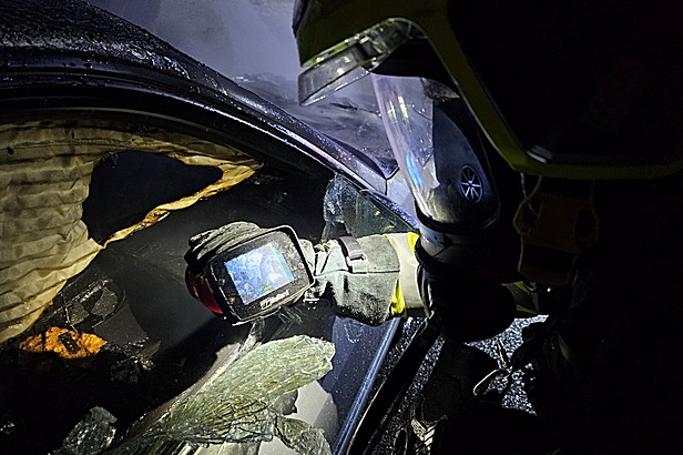 Nach abschließender Kontrolle des ausgebrannten Fahrzeugwracks mit einer Wärmebildkamera rückten die 16 Münchendorfer Feuerwehrmitglieder wieder ins Feuerwehrhaus ein.