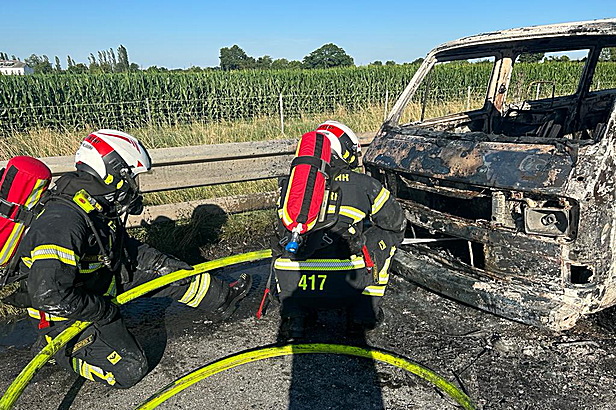 Aus bisher unbekannter Ursache geriet am Samstagnachmittag ein Kleinbus auf der A2 Südautobahn bei Wiener Neudorf in Brand. Alle Insassen, darunter auch Kleinkinder, konnten das auf den Pannenstreifen gelenkte Fahrzeug verlassen und blieben unverletzt.