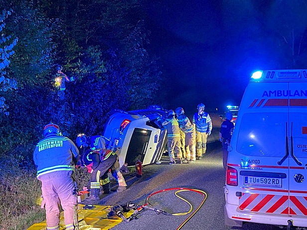 Am frühen Montagmorgen wurde die Feuerwehr Breitenfurt um 04:55 Uhr zu einer vermeintlich eingeklemmten Person nach einem Verkehrsunfall alarmiert. An der Einsatzstelle angekommen wurde festgestellt, dass der schwer verletzte Lenker in seinem auf der Beifahrerseite liegenden Fahrzeug eingeschossen war. Sofort wurden ein Geräteablageplatz für die technische Rettung und der Brandschutz aufgebaut.