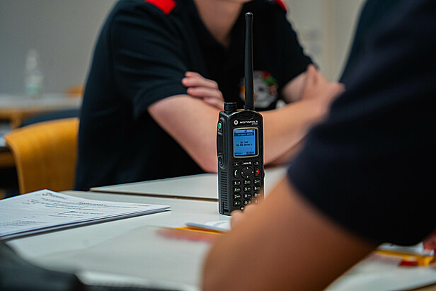 In den Nachmittagsstunden wurden die Teilnehmerinnen und Teilnehmer in vier Gruppen zu den praktischen Sprechübungen aufgeteilt. Beim ersten Durchgang wurde ein Funkgespräch nach Rollenbuch vorgelesen, um den Ablauf eines Funkgesprächs zu üben. Im zweiten Durchgang musste das Funkgespräch selbstständig formuliert werden.
