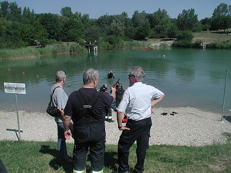 Die Personensuche blieb durch die FF Guntramsdorf erfolglos, somit befürchtete man, dass deren Besitzer im Teich ertrunken sein könnten.Der Einsatzleiter HBI Ludwig Marx von der Feuerwehr Guntramsdorf forderte über die Bezirksalarmzentrale Mödling die Tauchgruppe Süd zur Durchsuchung des Teichgrundes an.