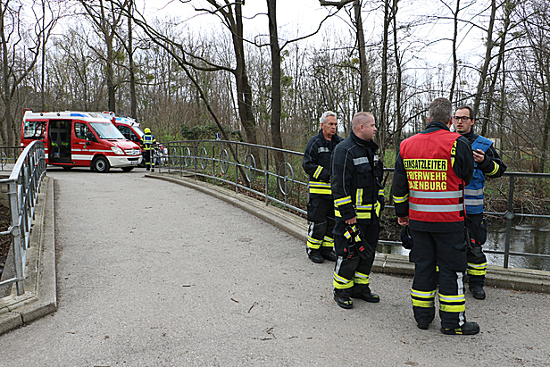Die Parkaufsicht alarmierte die Feuerwehr und beruhigte die Person bis zum Eintreffen der Einsatzkräfte. Gemeinsam konnte die völlig durchnässte sowie unterkühlte Dame von der Mannschaft beider Feuerwehren rasch aus dem Bach gerettet und zur Weiterversorgung an den nachalarmierten Rettungsdienst übergeben werden.