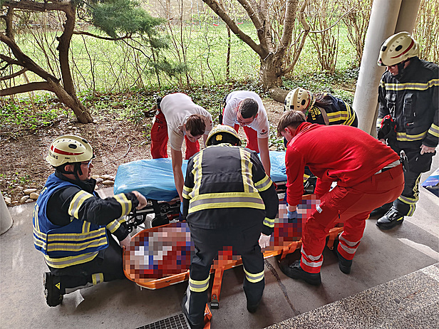 Feuerwehr leistet Tragehilfe für den Rettungsdienst