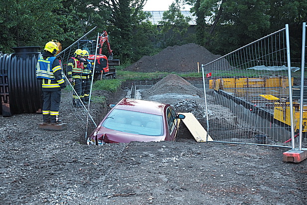 In den Abendstunden des 06. Mai 2024 durchbrach aus unbekannter Ursache ein PKW-Lenker mit seinem Fahrzeug einen Baustellenzaun in Biedermannsdorf und stürzte anschließend in eine Baugrube.