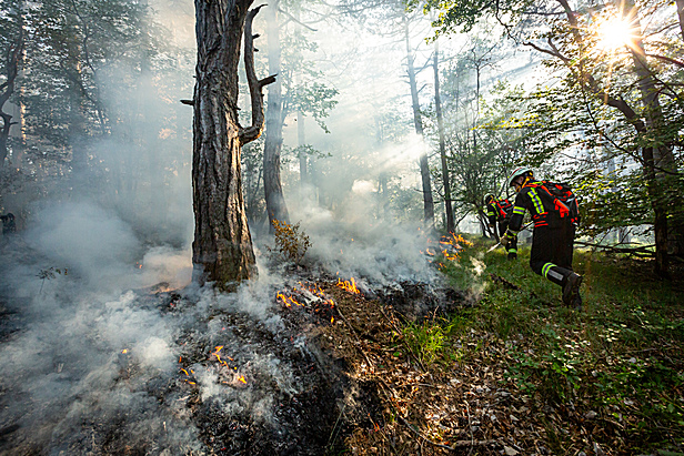 Im Mödlinger Waldgebiet, einem Teil des Wienerwalds, sind am 15. Mai 2024 mehr als 100 Einsatzkräfte der Feuerwehr bei der Bekämpfung eines Waldbrandes im Einsatz gestanden.