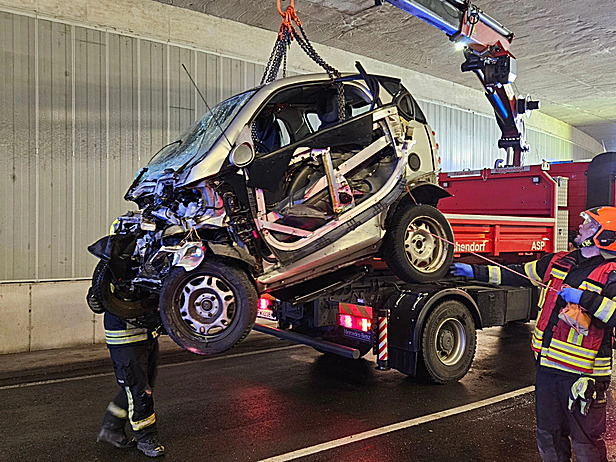 Nach der Unfallaufnahme durch die anwesende Polizei wurden die Unfallfahrzeuge nach etwa 20 Minuten freigegeben und konnten durch die zahlreich vor Ort anwesenden Feuerwehrkameraden nacheinander beseitigt werden. Dafür wurde der Kran des Wechselladefahrzeugs verwendet, wobei sich der Abtransport durch die begrenzte Höhe der Unterführung als herausfordernde Aufgabe darstellte, welche jedoch gekonnt und rasch gemeistert werden konnte.