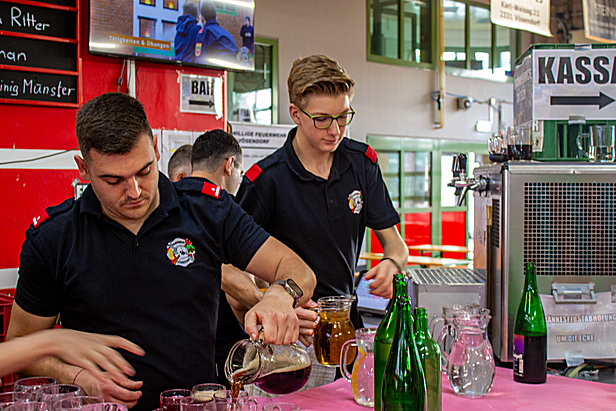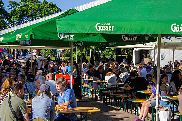 Das Küchenteam arbeitete zu dieser Zeit bereits gemeinsam mit der Schank auf Hochtouren, um die hungrigen und durstigen Gäste schnellst- und bestmöglich versorgen zu können. Das herrliche Wetter zog zahlreiche Besucherinnen und Besucher zum Fest. Für die Jüngsten stand eine Hüpfburg und ein Karussell bereit, für die Größeren waren ein Autodrom und ein Tagada im Schlosspark aufgebaut worden.