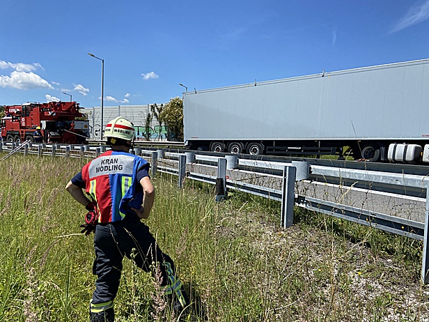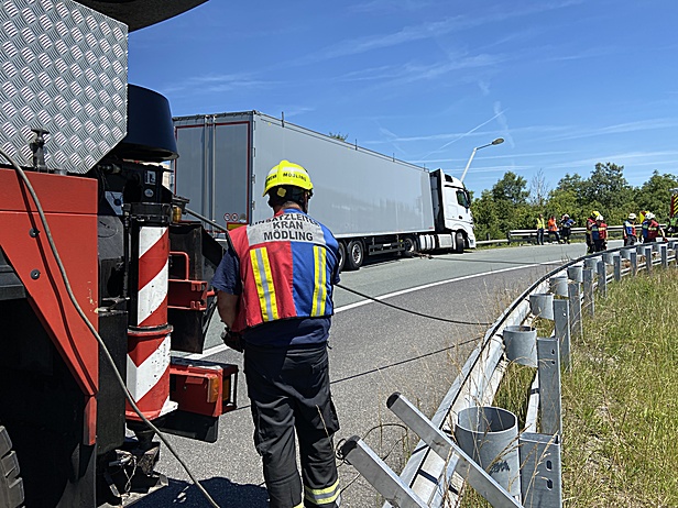 Am 17. Juni wurde die Freiwillige Feuerwehr Wiener Neudorf zu einem Verkehrsunfall mit einem Sattelzug auf die Südautobahn (A2 - Rampe A21) alarmiert. Zur Bergung des Schwerfahrzeuges wurde das Kranfahrzeug des Niederösterreichischen Landesfeuerwehrverbandes aus Mödling angefordert.