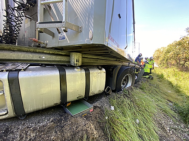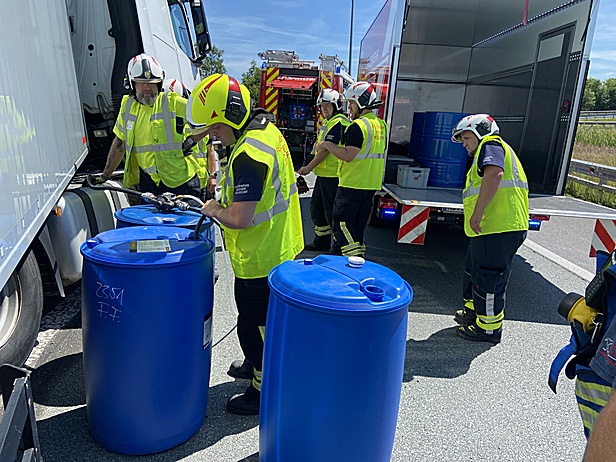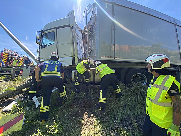 Aus unbekannter Ursache war das Schwerfahrzeug von der Fahrbahn abgekommen, touchierte die Leitschiene und drohte umzustürzen. Das Fahrzeug war mit 7 Tonnen Holz beladen, wobei es durch den Zusammenstoß mit der Leitschiene zu einem Dieselaustritt kam. Der Fahrer blieb dabei glücklicherweise unverletzt.