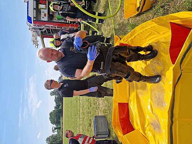 Umfangreiche Dekontaminationsmaßnahmen von Mannschaft und Gerät waren erforderlich.