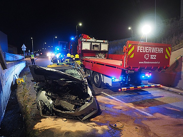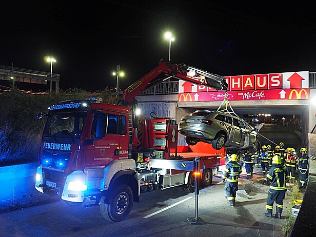 In den Nachtstunden des 5.8.2024 durchbrach ein Pkw-Lenker aus unbekannter Ursache mit seinem Fahrzeug auf der B11 nahe der Grenze zwischen Biedermannsdorf und Wiener Neudorf eine Leitschiene und stürzte anschließend ca. zehn Meter über eine Böschung auf eine darunterliegende Straße. Die Feuerwehr Biedermannsdorf wurde zu einer Menschenrettung alarmiert. Am Einsatzort konnte festgestellt werden, dass keine Personen mehr im PKW eingeschlossen waren. Da sich der Unfallort auf Wiener Neudorfer Gemeindegebiet befand, wurde in Absprache mit der örtlich zuständigen Feuerwehr Wiener Neudorf der Pkw mittels Krans geborgen, ausgetretene Betriebsflüssigkeiten gebunden, Fahrzeugteile entfernt und die Fahrbahn gereinigt. Der Pkw-Lenker musste mit Verletzungen vom Rettungsdienst in Notarztbegleitung in ein Krankenhaus eingeliefert werden.