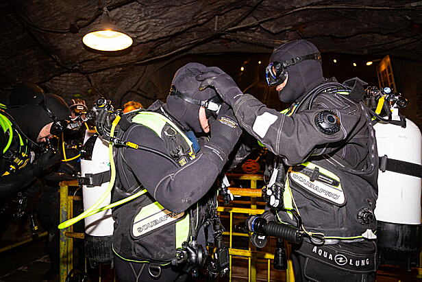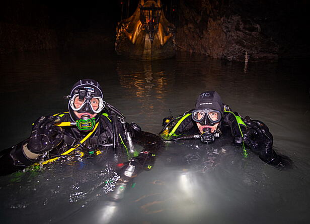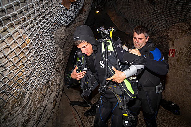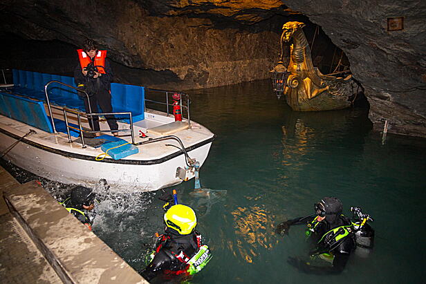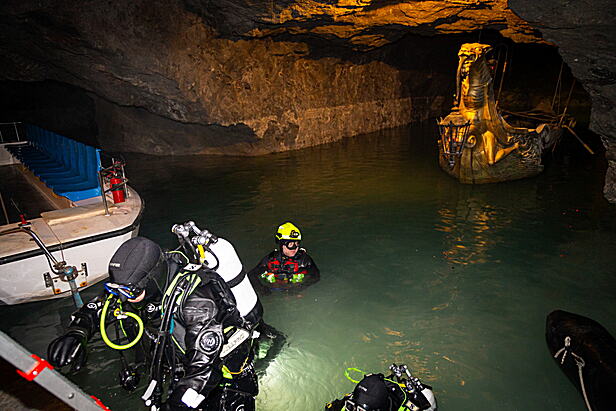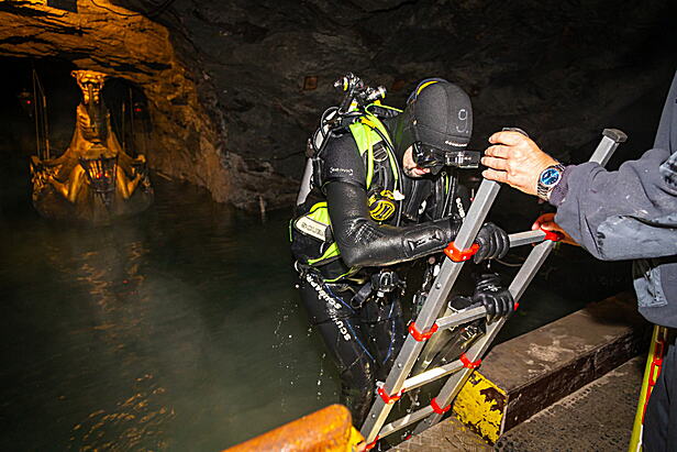 Feuerwehrtaucher übten in Seegrotte