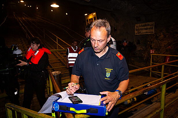 Die Annahme bei der Übung war, dass mehrere Personen das frühere Gipsbergwerk unbefugt betreten hatten, zwei von ihnen wurden nun auf der untersten Ebene vermisst. In dieser Etage befindet sich der 6.200 m² große See, der als Touristenattraktion auch mit Booten befahren wird. Im Jahr 2004 hatte sich hier ein folgenschweres Bootsunglück ereignet, bei dem fünf Gäste aus Deutschland und Belgien verstarben.