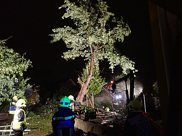 Seit gestern gab es im Bezirk Mödling bisher wenige Auspumparbeiten aufgrund der starken Regenfälle, aber dafür umso mehr Einsätze wegen des Sturms: Dabei mussten zahlreiche umgestürzte Bäume von Verkehrsflächen entfernt, lose Blech- und Dachteile gesichert und andere Verkehrshindernisse entfernt werden. Mehrere Bäume stürzten auf parkende Autos und Wohnhäuser. Die Feuerwehr sicherte zudem mehrere (Wahl-)Plakate, Baugerüste und Trampoline und füllte vorsorglich Sandsäcke. Nur 20 Einsätze hatten mit Wassereintritt / Auspumparbeiten zu tun.
