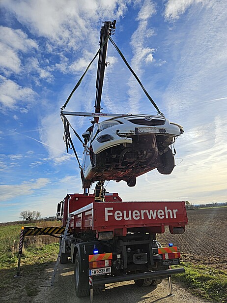 Zu einem spektakulären Einsatz kam es in Münchendorf am Montagvormittag, des 18. Novembers 2024. Ein Fahrzeug kam in einem Nebenarm der Triesting zum stehen und der Fahrer musste aus dem Fahrzeug mittels Spineboard gerettet werden.