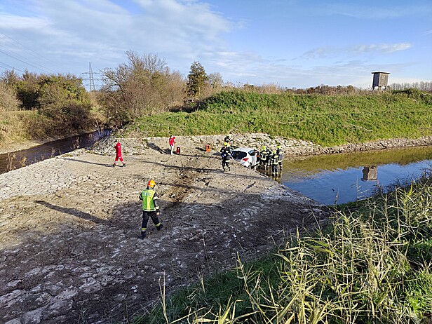 Aus noch ungeklärter Ursache kam der Fahrer über das Ufer der Triesting wo er in einem Nebenarm des Flusses zum stehen kam. Sofort wurde die Rettungskette in Gang gesetzt und innerhalb von wenigen Minuten befanden sich sowohl First Responder, Rettung, Feuerwehr und Polizei am Unfallort. Von der Freiwilligen Feuerwehr Münchendorf wurde umgehend ein Zugang zu dem eingeschlossenen Fahrer geschaffen und in Absprache mit den Rettungskräften des Roten Kreuzes die Rettung der verletzten Person aus dem Fahrzeug durchgeführt. Mittels Spineboard und vielen helfenden Händen wurde der Verunfallte über die steile Böschung zum Rettungswagen transportiert und dort umgehend erstversorgt.