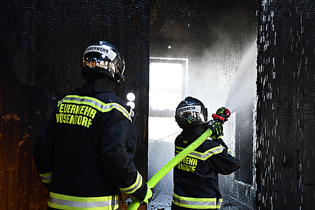 Zur Ablöse der eingesetzten Trupps und für umfangreiche Nachlöscharbeiten unterstützte ab diesem Zeitpunkt auch die Feuerwehr Vösendorf mit mehreren Atemschutztrupps.