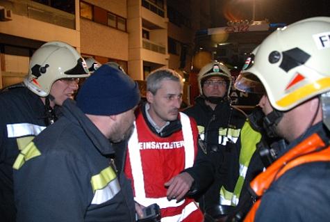 Nach dem die Feuerwehr Mödling kurze Zeit später eintraf wurde sofort unter Atemschutz die Gasflasche ins Freie gebracht und aus einiger Entfernung mit Wasser gekühlt. Aus Sicherheitsgründen wurde der Strom in der Wohnhausanlage abgeschaltet um die Gefahr einer weiteren Explosion zu verhindern. Zeitgleich begannen die Einsatzkräfte mittels Hochleistungslüfter das Gebäude mit Frischluft zu versorgen.