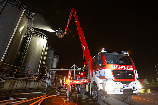 „Gerade die Löschwasserversorgung stellte eine besondere Herausforderung dar. Zusätzlich zur Zisterne mussten auch nahe Hydranten am Betriebsgelände und im Industriezentrum genutzt werden, um den hohen Wasserbedarf sicherzustellen“, erklärt Michael Biegler, Gesamteinsatzleiter.
