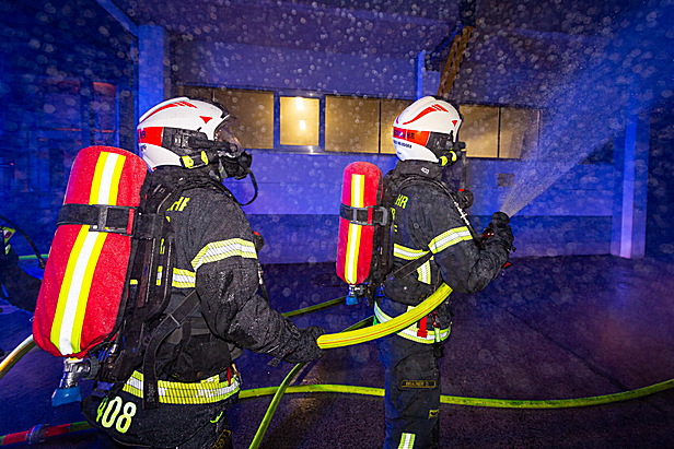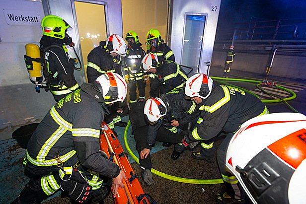 Neben der Wasserversorgung waren die drei Feuerwehren auch in einer Lagerhalle gefordert: Unter Atemschutz wurden dort vermisste Personen gesucht und gerettet. Sämtliche geretteten Personen wurden durch den Feuerwehrmedizinischen Dienst der Feuerwehr Mödling versorgt, der auch für mögliche reale Verletzungen während des Übungsbetriebs bereitstand.