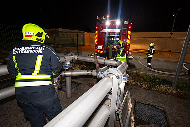 Knapp 100 Mitglieder der Freiwilligen Feuerwehren Guntramsdorf, Mödling und Wiener Neudorf trainierten am Mittwochabend gemeinsam im Industriezentrum Niederösterreich Süd. Eine stillgelegte Industrieanlage inklusive Tanklager bot dabei ideale Bedingungen, um eine realitätsnahe Ausbildung der drei beteiligten Feuerwehren zu ermöglichen.