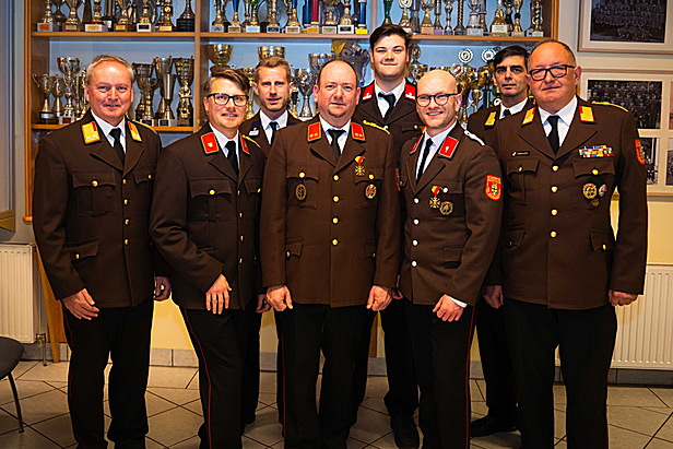 Weiters wurde die Mitgliederversammlung für die Angelobung, Beförderung und Auszeichnung diverser Mitglieder genutzt – unter anderem durch das Bezirks- & Abschnittsfeuerwehrkommando, das die Katastropheneinsatzmedaille für das Hochwasser 2024 überreichte.