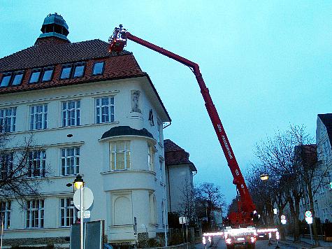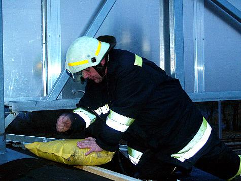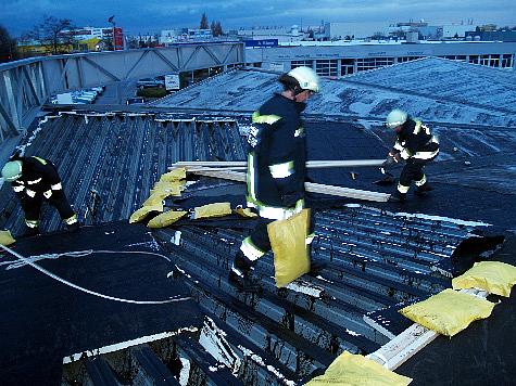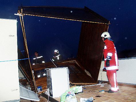 Mit Ziegellatten und Sandsäcken beschwerten die Einsatzkräfte der Feuerwehr Guntramsdorf das Dach, damit der Wind keine größeren Schäden mehr anrichten konnte.