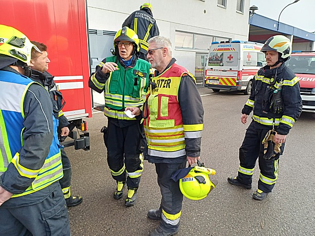 Glücklicherweise gab es keine Verletzten. Unverzüglich rüstete sich ein Atemschutztrupp aus. Parallel dazu erhöhte der Einsatzleiter die Alarmstufe und ließ die Feuerwehr Guntramsdorf mittels Sirene und Gesamtalarm sowie die Betriebsfeuerwehr Axalta und die Feuerwehr Gumpoldskirchen nachalarmieren.