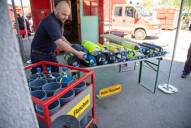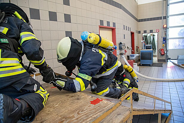 Im Rahmen mehrerer Praxisstationen wurden unter anderem eine Hindernisbahn, Türcheck, Strahlrohrtraining, das Besteigen von Leitern mit gleichzeitigem Aufziehen von Leitungen, Suchtechniken sowie das richtige Überwinden von Hindernissen trainiert. Weitere Schwerpunkte bildeten das Vorgehen bei einem Atemschutznotfall sowie Hygienemaßnahmen im Einsatz.