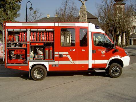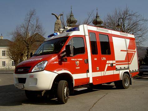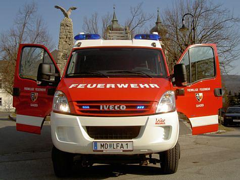 Unter den Ehrengästen konnte u.a. Bürgermeister OBM Rainer Schramm, Bezirkshauptmann-Stv. Mag. Andreas Strobl, Bezirksfeuerwehrkommandant LFR Franz Koternetz und dessen Stv. BR Ing. Richard Feischl begrüßt werden. Besonders zu erwähnen ist, dass bei der Anschaffung des LFA die Freiwillige Feuerwehr Gaaden die unglaubliche Summe von EUR 84.000,-- selbst aufgebracht hat. Ein besonderer Dank gilt der Familie Edith und Bernhard Rankl für die großzügige Spende. Vorstellung und Daten des Fahrzeuges: Das neue Löschfahrzeug-Allrad der Freiwilligen Feuerwehr Gaaden wurde von der Firma Lohr Magirus auf einen Iveco Daily Fahrgestell aufgebaut. Neben der Normausstattung ist auch noch ein hydraulisches Rettungsgerät von der Firma Weber, eine Hochdrucklöschanlage, ein pneumatischer Lichtmast sowie eine pneumatische Absenkung für die Tragkraftspritze eingebaut. Ansonsten ist noch eine Umfeldbeleuchtung, eine Verkehrsleiteinrichtung, Zusatzbeleuchtung unter den Rückspiegeln, ein 11 kVA Stromerzeuger, eine Unterwasserpumpe Mast 1.200 l. sowie eine Motorkettensäge zu finden. Die Besatzung ist 1:8, auf einem Fahrgestell mit einem HzGG von 6.700 kg. Die Länge des LFA beträgt 6,5 m, die Breite 2,2 m und die Höhe 2,85 m. Die Motorleistung beträgt 177 PS Dieselmotor mit permanentem Allrad und einem Nebenantrieb für die Löschanlage. Die Fahrzeugweihe wird im Zuge des Feuerwehrheurigen am 3. Mai 2008 in Gaaden stattfinden.Bildautor: Freiwillige Feuerwehr Gaaden
