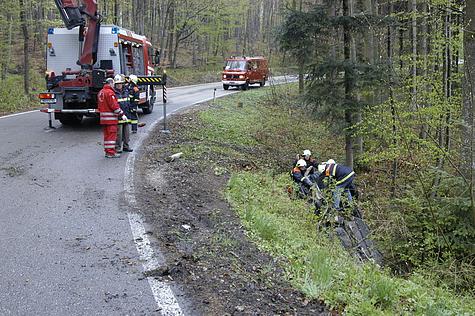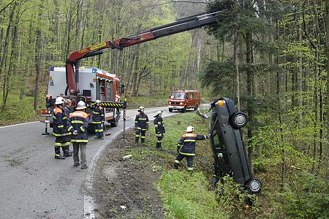 Kurze Zeit später trafen die Einsatzkräfte der Feuerwehr Sittendorf an der Unfallstelle ein. Polizei und Rettung waren bereits vor Ort. Schnell konnte die verunfallte Person händisch aus dem Fahrzeug befreit und der Rettung übergeben werden. Diese führte eine Erstversorgung der Verletzten durch und brachte sie anschließend ins Krankenhaus.