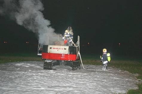 Beim Eintreffen der Feuerwehr Vösendorf stand der Bagger bereits in Vollbrand. Der während der Fahrt ausgerüstete Atemschutztrupp begab sich unverzüglich mittels Mittelschaumrohr zum Brandobjekt vor. Die Löschmaßnahmen zeigten sofort ihre Wirkung und der Brand konnte schnell unter Kontrolle gebracht werden.