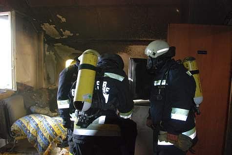 Durch die wärme der Zimmertüre wurde ein größerer Brand vermutet. Vorsichtig öffnete der Atemschutztrupp die Türe und gab erste Sprühstöße ab. Danach drang der Trupp in das Zimmer ein. Schnell konnte der Brand beim Bett lokalisiert und gelöscht werden. Nach öffnen des Fenster wurde ein Hochleistungslüfter aufgestellt um das Zimmer rauchfrei zu bekommen.