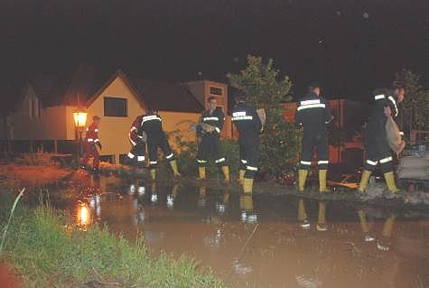 Sofort begann die Feuerwehr Gumpoldskirchen mit mehreren Unterwasserpumpen gleichzeitig die überfluteten Keller auszupumpen. Zeitgleich zu den Pumparbeiten inspizierte Einsatzleiter Bezirksfeuerwehrkommandant-Stv. BR Ing. Richard Feischl die Retentionsbecken in den Weinbergen.
