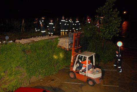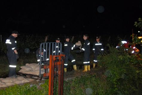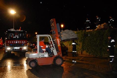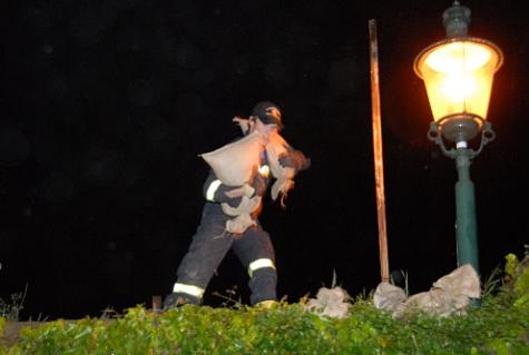 Nach bereits über 6 Stunden Dauereinsatz der Freiwilligen Feuerwehr Gumpoldskirchen wurden in den Abendstunden händisch Sandsäcke am Bauhof der Marktgemeinde Gumpoldskirchen gefüllt und verladen.