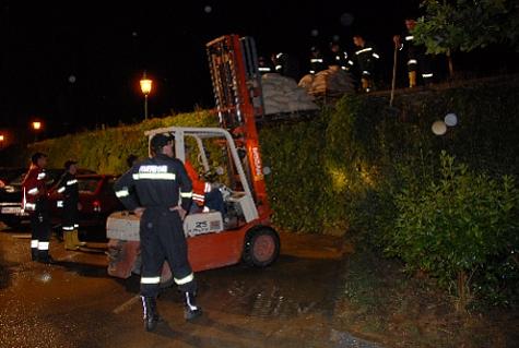Am besagten Parkplatz in der Badener Straße wurden rund 200 Sandsäcke auf einer Länge von ca. 20 m zur Sicherung und zum Wohle der Bevölkerung aufgelegt um die bevorstehenden Wassermassen zurück zu halten.