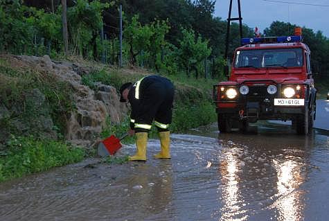 Gleichzeitig zum Einsatz am Richardshof waren die Kameraden der Feuerwehr Gumpoldskirchen entlang der Weinbergstraße im Einsatz. Die Wassermassen aus den Weinbergen suchten sich ihren Weg über die Weinbergstraße und überfluteten teilweise die Straße. Die Fahrspur Richtung Baden musste gesperrt werden.