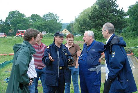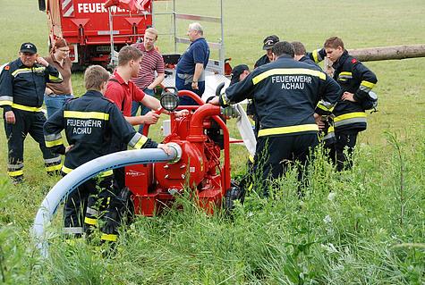 Mit einer insgesamten Fördermenge von 8.000 l pro Minute wurde den beiden Beregnungsanlagen über 1 Mio. Liter Wasser entzogen. So konnte sichergestellt werden, dass die Teiche nicht zu bersten beginnen.