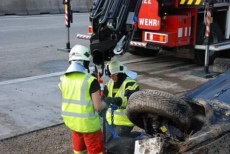 Auf der Südautobahn in Fahrtrichtung Graz vor der Ausfahrt Traiskirchen kam es in den Morgenstunden zu einem folgenschweren Unfall. Ein Lenker kam von der Autobahn ab, krachte dabei in die Leitschiene und kam am Dach liegend im Lärmschutzdamm zum Stillstand. Aus bisher unbekannten Gründen brach im Motorraum ein Feuer aus. Gleich nach der Alarmierung rückte die Feuerwehr Wiener Neudorf zur Einsatzstelle aus. An der Unfallstelle angekommen war der Brand bereits mit einem Feuerlöscher der zufällig vorbeifahrenden Polizei eingedämmt. Die verletzte Person konnte händisch befreit werden und an das Rote Kreuz übergeben werden. Mit einem HD-Rohr vom Tank 1 Wr. Neudorf wurden Nachlöscharbeiten im Motorraum durchgeführt. Anschließend wurde das verunfallte Fahrzeug mit dem Ladekran des SRF Wiener Neudorf geborgen und am nächsten Parkplatz abgestellt. Nach rund einer Stunde konnten die Einsatzkräfte der Feuerwehr Wiener Neudorf unter der Einsatzleitung von BM Christian Luka wieder in das Feuerwehrhaus einrücken.Bildautor: Wimmer/BFK-Mödling