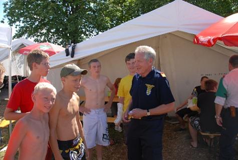 Bei strahlendem Sonnenschein und guter Lagerstimmung besuchte er die Jugendlichen bei ihren Zelten und Freizeitbeschäftigungen und gratulierte Ihnen zu ihren Bewerbsleistungen.