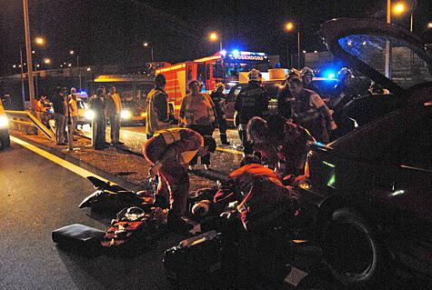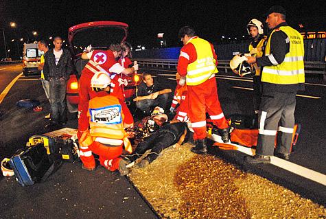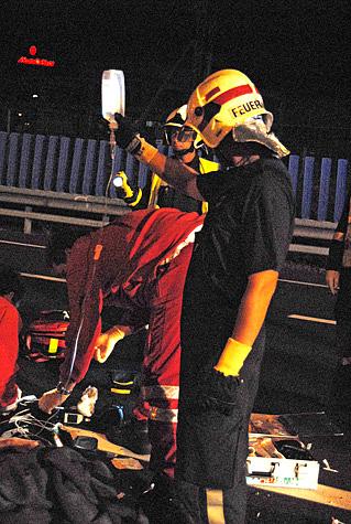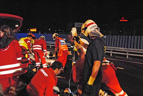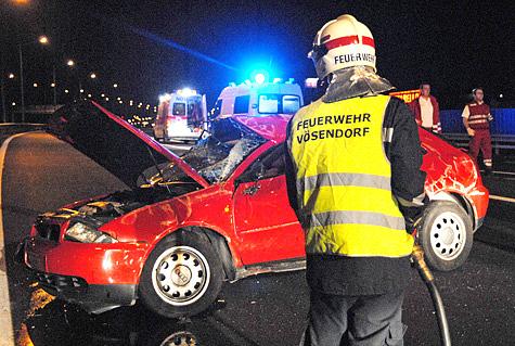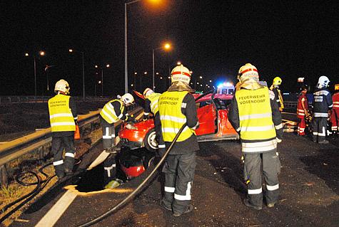 Zeitgleich mit dem Roten Kreuz traf das Vorausfahrzeug der Feuerwehr Vösendorf ein. Auf der Fahrbahn der Autobahn lagen drei junge Personen schwerst verletzt und wurden sofort von den Notarztbesatzungen aus Mödling und Baden erstversorgt.