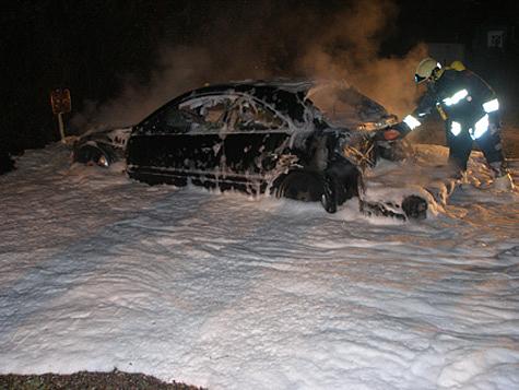 Mehrere Passanten verständigten in den Morgenstunden vom 20. August über Notruf die BAWZ Mödling, dass auf einem Parkplatz einer Schrebergartenanlage bei der B 16 ein Auto im Vollbrand steht und dass außerdem ein lauter Knall wahrgenommen wurde.