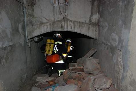 Ein Kellerbrand war die Übungsaufgabe der dritten Station. Das entwichene Gas aus der zerstörten Gasleitung führte zu einem Kellerbrand. Zwei Atemschutztrupps drangen in das Objekt ein und löschten den Brand mittels 2 C-Rohren. Weiters mussten drei Personen aus dem Keller befreit werden. Besonders schwierig gestaltete sich die Personenrettung aus einer zirka 1000 Meter langen Fluchtröhre.