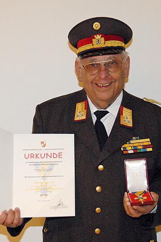 Dies beweist auch die Tatsache, dass zu seinem 75. Geburtstag seitens des Bezirksfeuerwehrkommandos LFR Franz Koternetz, BR Ing. Richard Feischl, BR Josef Drexler und ABI Erwin Rautner erschienen und ihm gratulierten. Im Zuge dessen wurde ihm für seine Leistungen als Bezirksfeuerwehrkommandant das Verdienstzeichen 1. Klasse des NÖ Landesfeuerwehrverbandes verliehen.