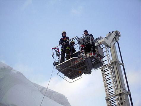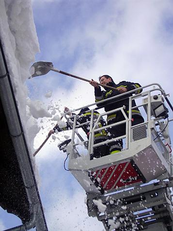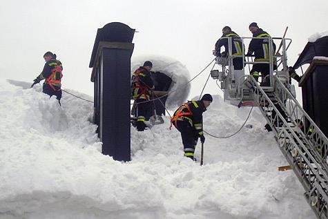 Alle auf Dächern eingesetzten Feuerwehrmänner waren über Höhenrettungsfahrzeuge bzw. Feuerwehrkräne gesichert. Teilweise wurden mittels Seilschnitten gezielt Dachlawinen abgelassen, was eine große Zeiteffizienz brachte.