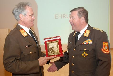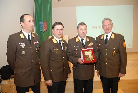Ehrenoberbrandrat Alfred Ofner wurde eine besondere Ehre zu Teil. Er erhielt eine Auszeichnung vom BFKDO Mödling für die gute Zusammenarbeit.