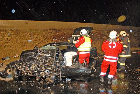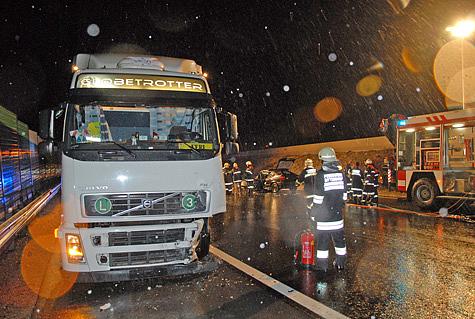 Das wahre Ausmaß des Unfalls wurde erst beim Eintreffen am Einsatzort sichtbar. Der Geisterfahrer raste von Wien kommend auf der falschen Richtungsfahrbahn auf einen LKW zu. Der LKW-Fahrer versuchte noch auf den Pannenstreifen auszuweichen doch konnte er den Aufprall nicht verhindern. Der PKW traf auf der Fahrerseite mit voller Wucht auf den Sattelschlepper.