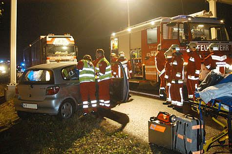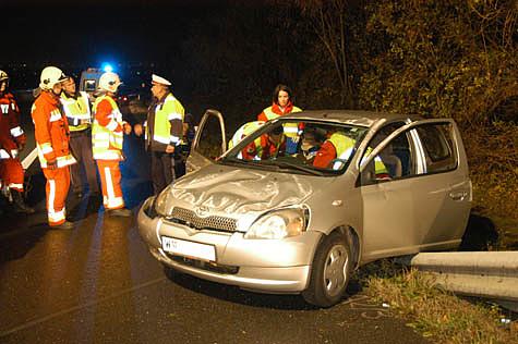 Autobahn-Menschenrettung auf der A21 Fahrtrichtung Wien lautete die Alarmierung für die Freiwillige Feuerwehr Gießhübl um 21 Uhr 12. Ein Pkw kam auf der regennassen Fahrbahn aus ungeklärter Ursache ins Schleudern. Vermutlich überschlug sich das Fahrzeug und kam wieder auf den Rädern zu stehen.