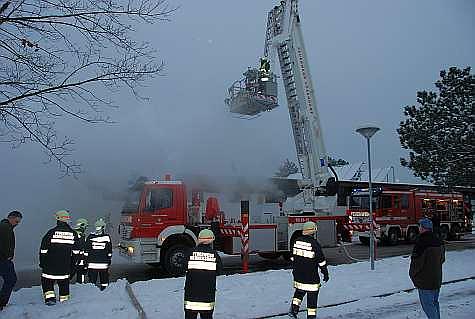 Gegen 15 Uhr 30 dürfte der Brand aufgrund der dichten Rauchschwaden, die bereits aus dem Gebäude drangen, bemerkt worden sein. Die Bezirksalarmzentrale Mödling alarmierte darauf hin die Freiwillige Feuerwehr Vösendorf. Als erstes Fahrzeug traf das Tanklöschfahrzeug am Einsatzort ein.